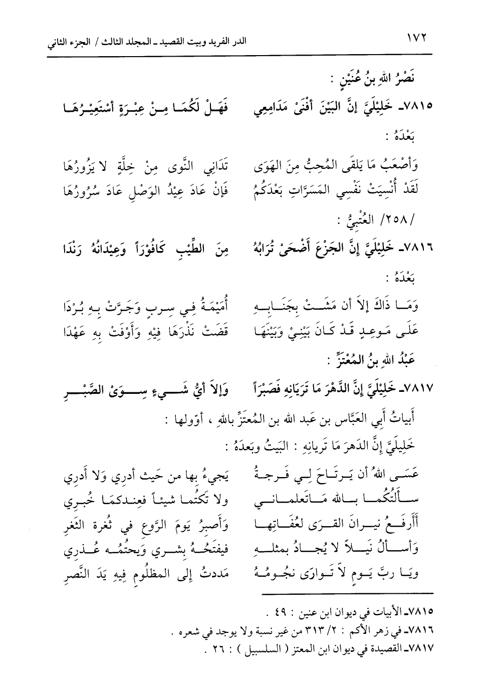 7817 - القصيدة في ديوان ابن المعتز (السلسبيل): 26.