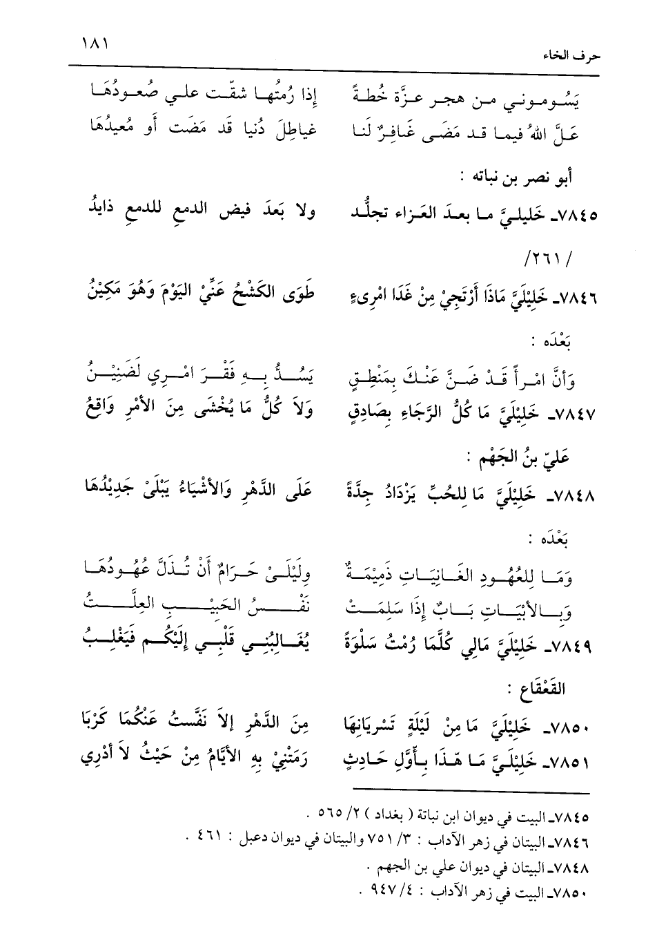 7851 - خَلِيْلَيَّ مَا هَذَا بِأَوَّلِ حَادِثٍ ... رَمَتْنِيْ بِهِ الأيَّامُ مِنْ حَيْثُ لَا أدْرِي