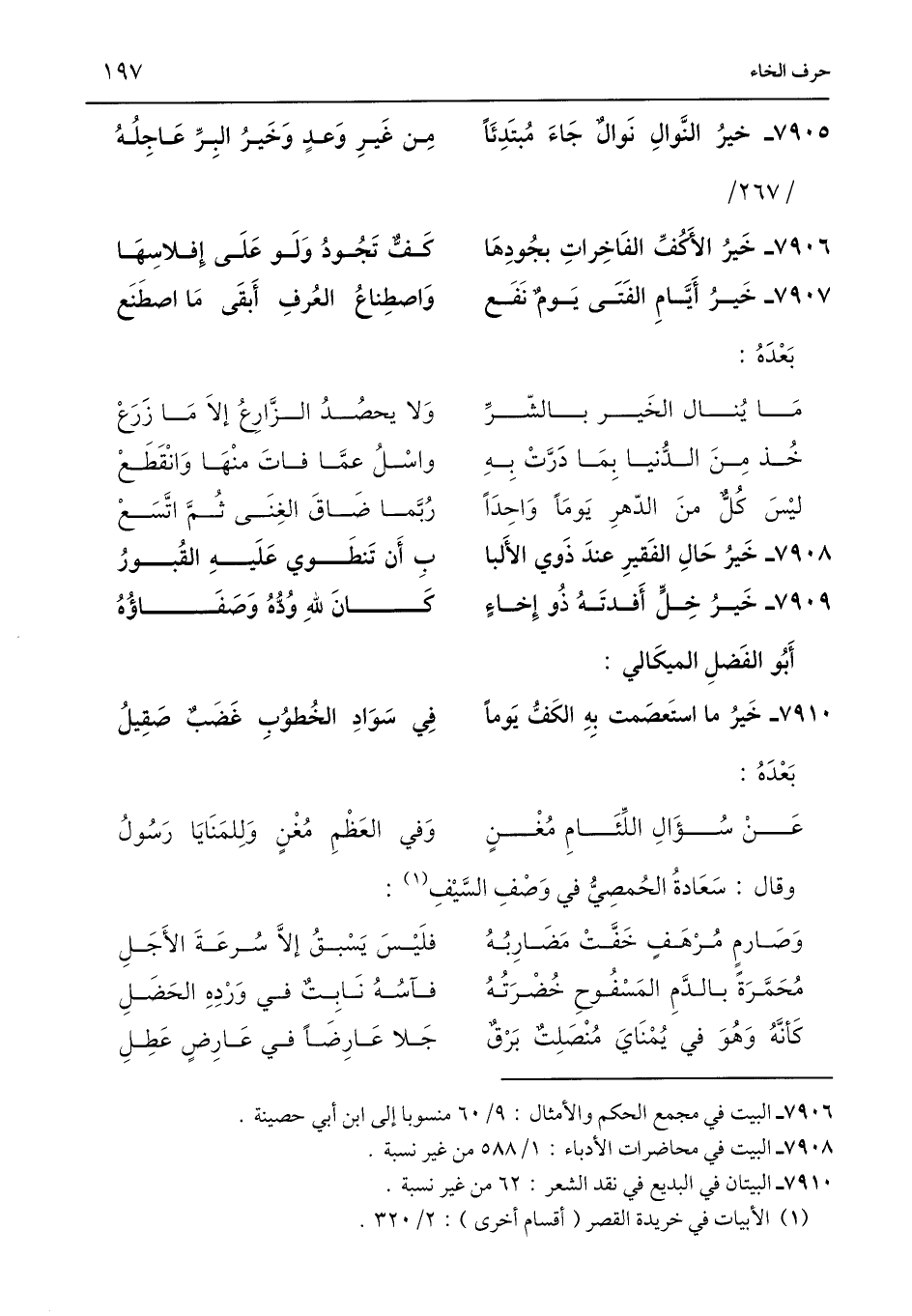 7905 - خيرُ النَّوالِ نَوالٌ جَاءَ مُبتَدِئًا ... مِن غَيرِ وَعدٍ وَخَيرُ البِرِّ عَاجِلُهُ