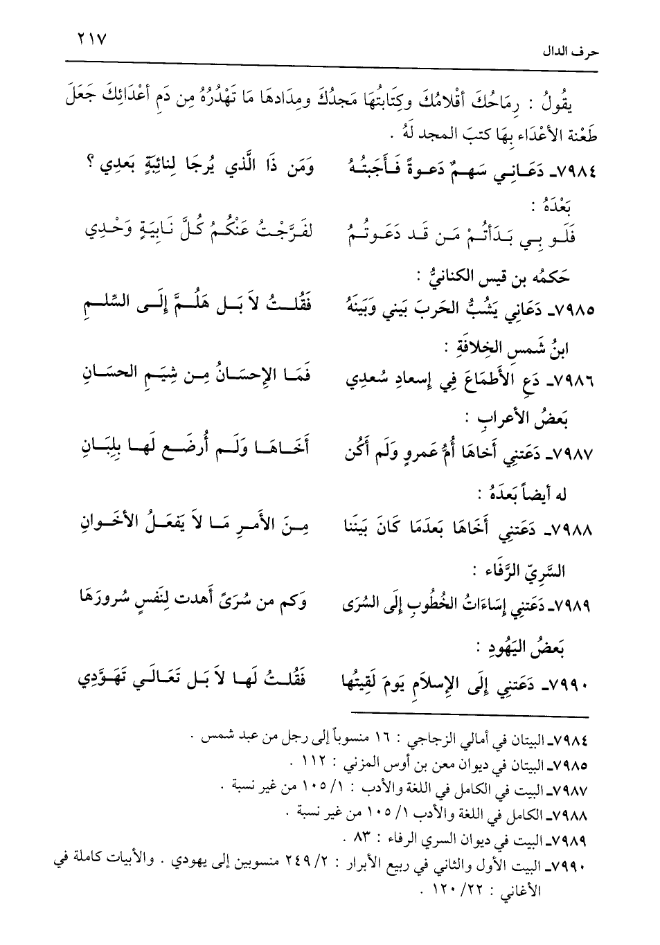 7984 - البيتان في أمالي الزجاجي: 16 منسوبًا إلى رجل من عبد شمس.