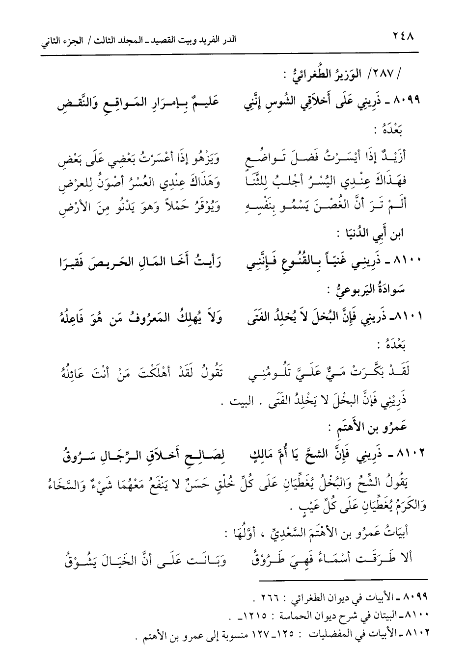 8099 - الأبيات في ديوان الطغرائي: 266.