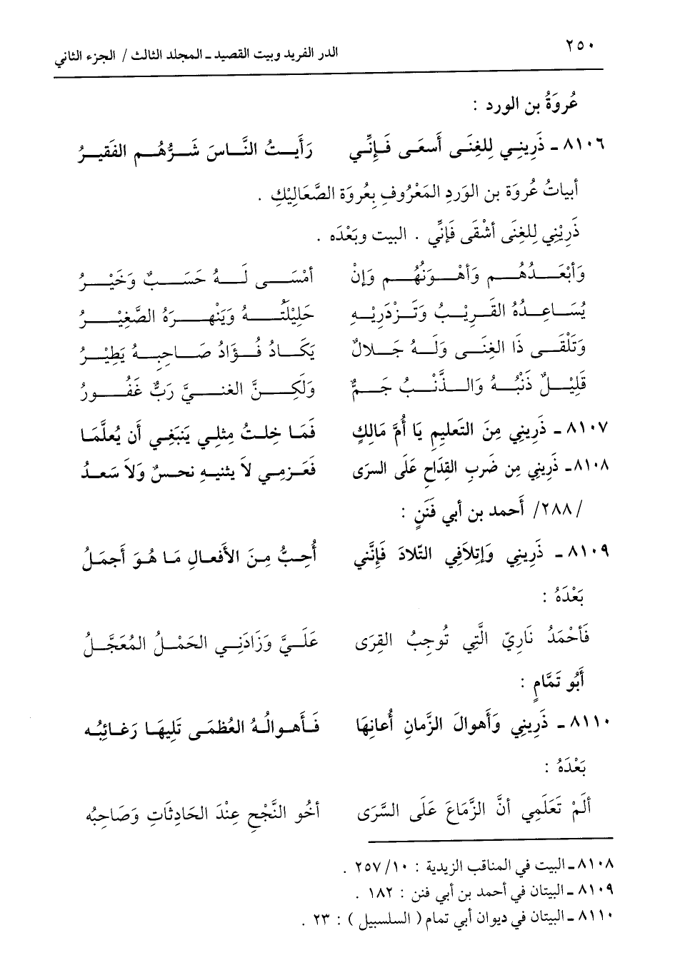 8106 - ذَرِينِي لِلغِنَى أَسعَى فَإِنِّي ... رَأَيتُ النَّاسَ شَرُّهُم الفَقيرُ