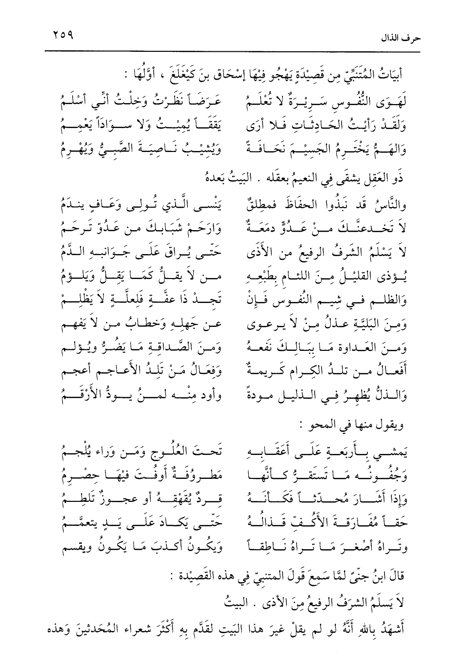 أبيَاتُ المُتَنَبِّيّ مِن قَصِيْدَةٍ يَهْجُو فِيْها إسْحَاق بنَ كَيْغَلَغَ، أوَّلُها: