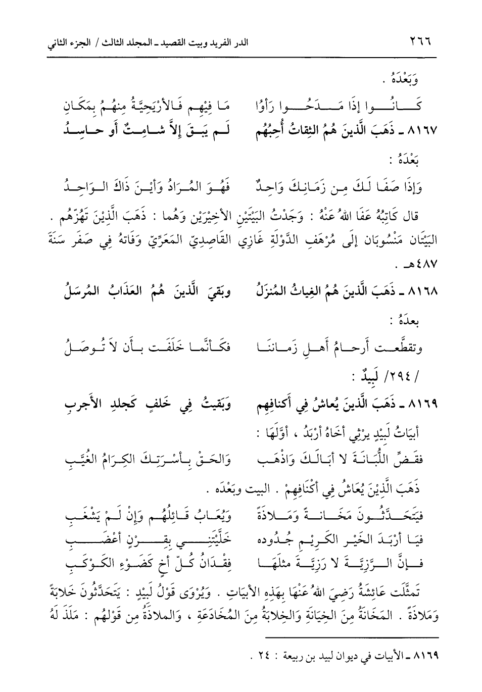8169 - الأبيات في ديوان لبيد بن ربيعة: 24.