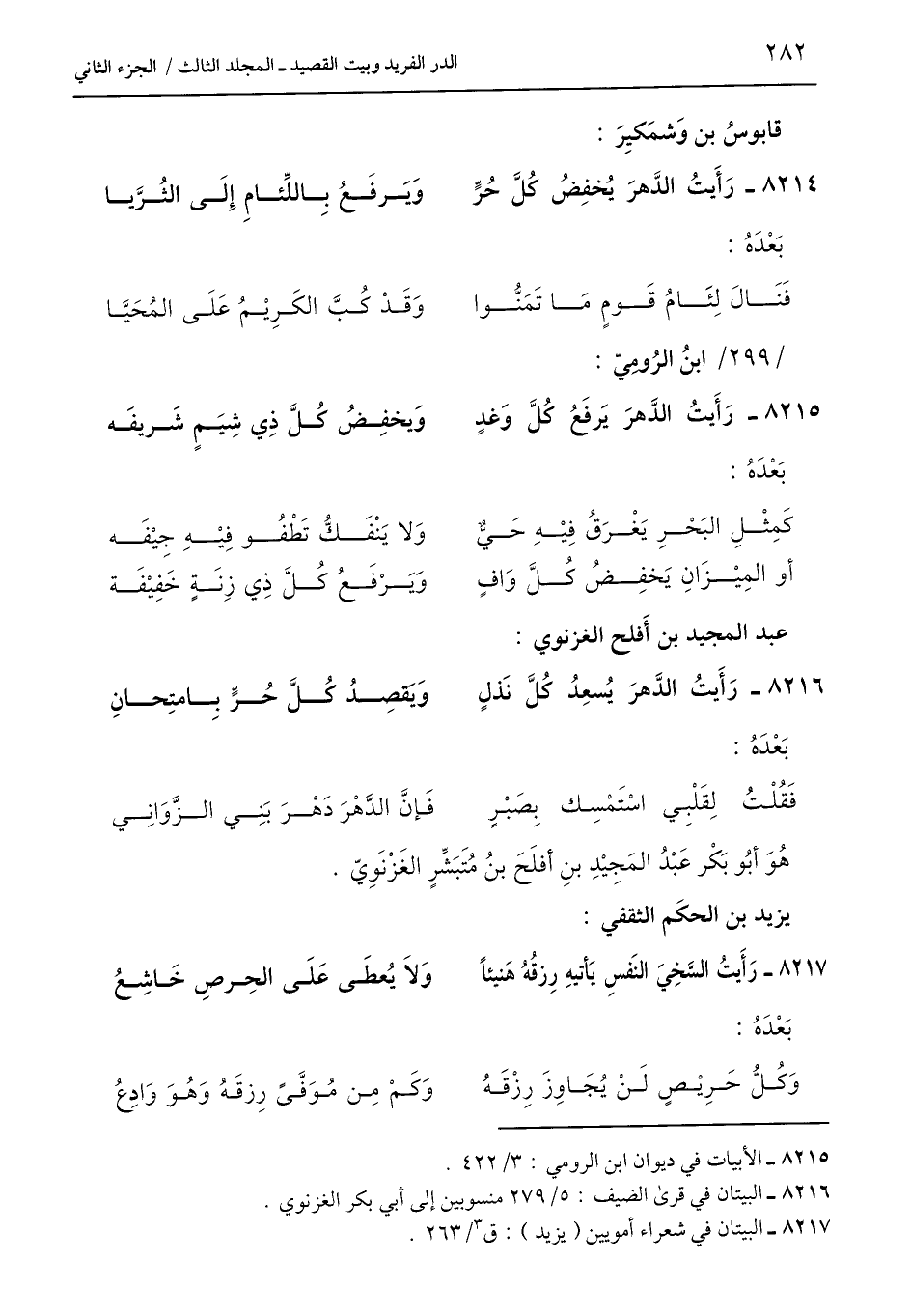 8215 - رَأَيتُ الدَّهرَ يَرفَعُ كُلَّ وَغدٍ ... وَيخفِضُ كُلَّ ذِي شِيَمٍ شَريفَه