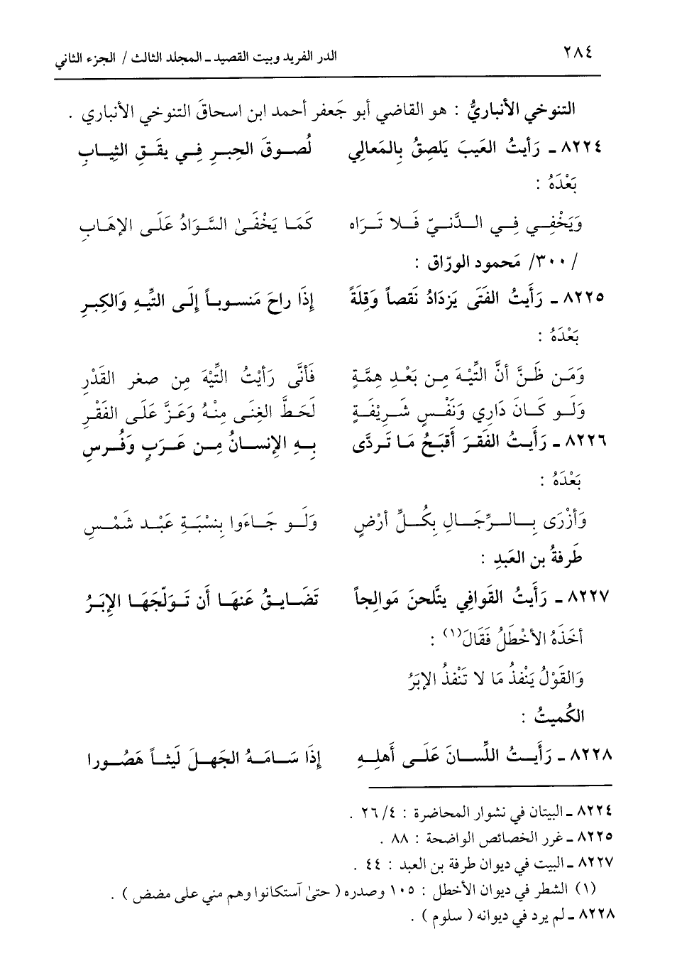 8224 - البيتان في نشوار المحاضرة: 4/ 26.