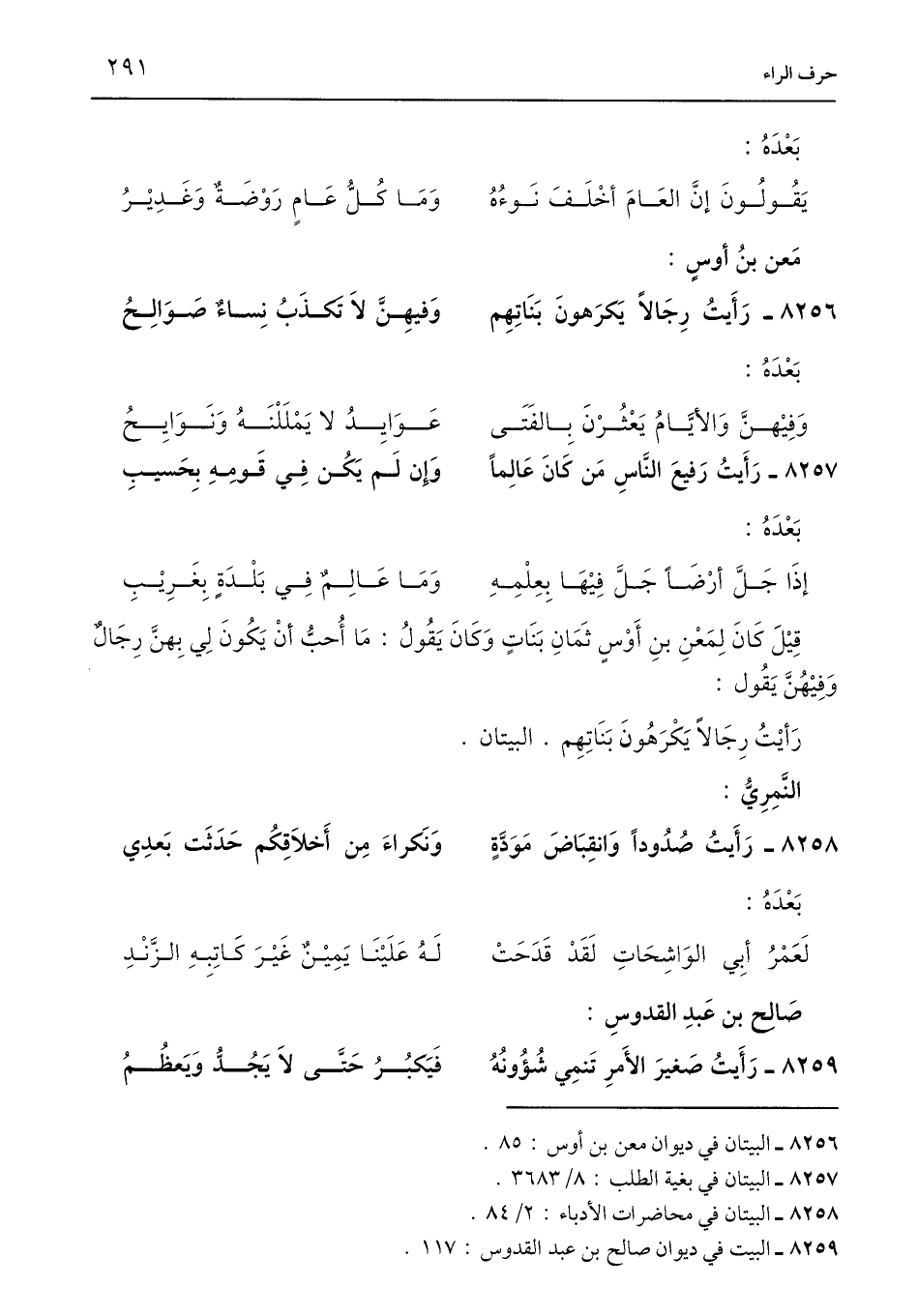 8259 - البيت في ديوان صالح بن عبد القدوس: 117.