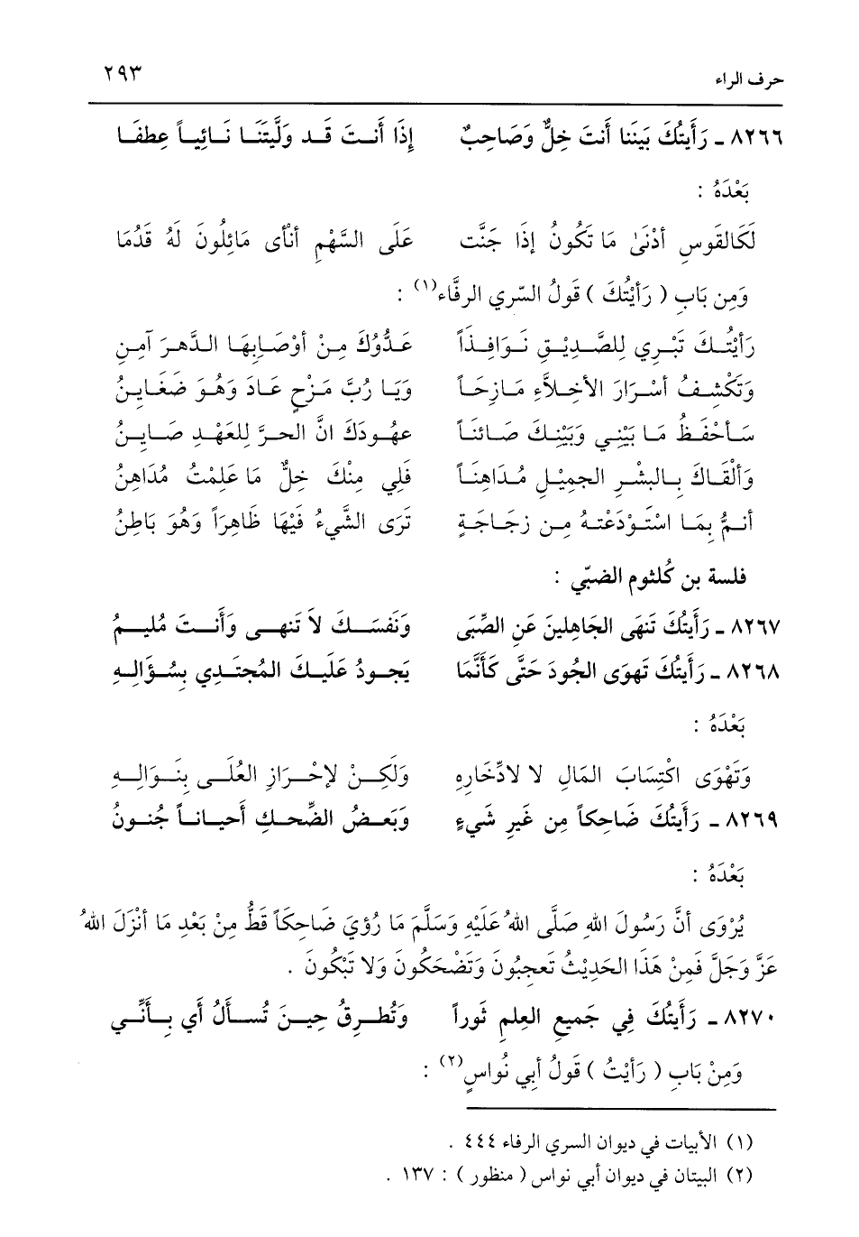 وَمِن بَابِ (رَأيْتُكَ) قَولُ السّري الرفَّاء (¬1):
