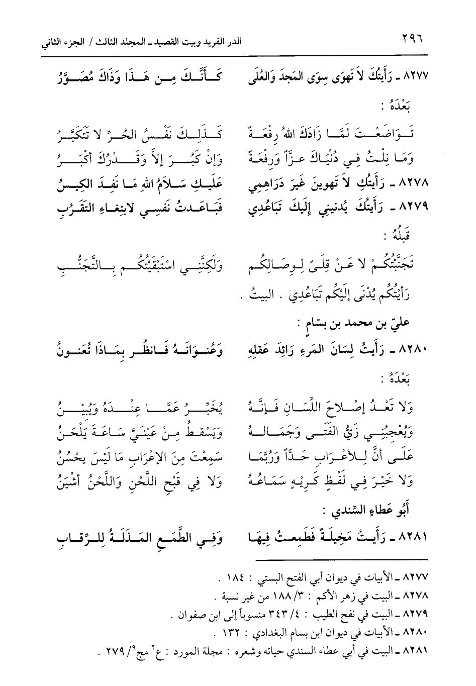 8280 - الأبيات في ديوان ابن بسام البغدادي: 132.