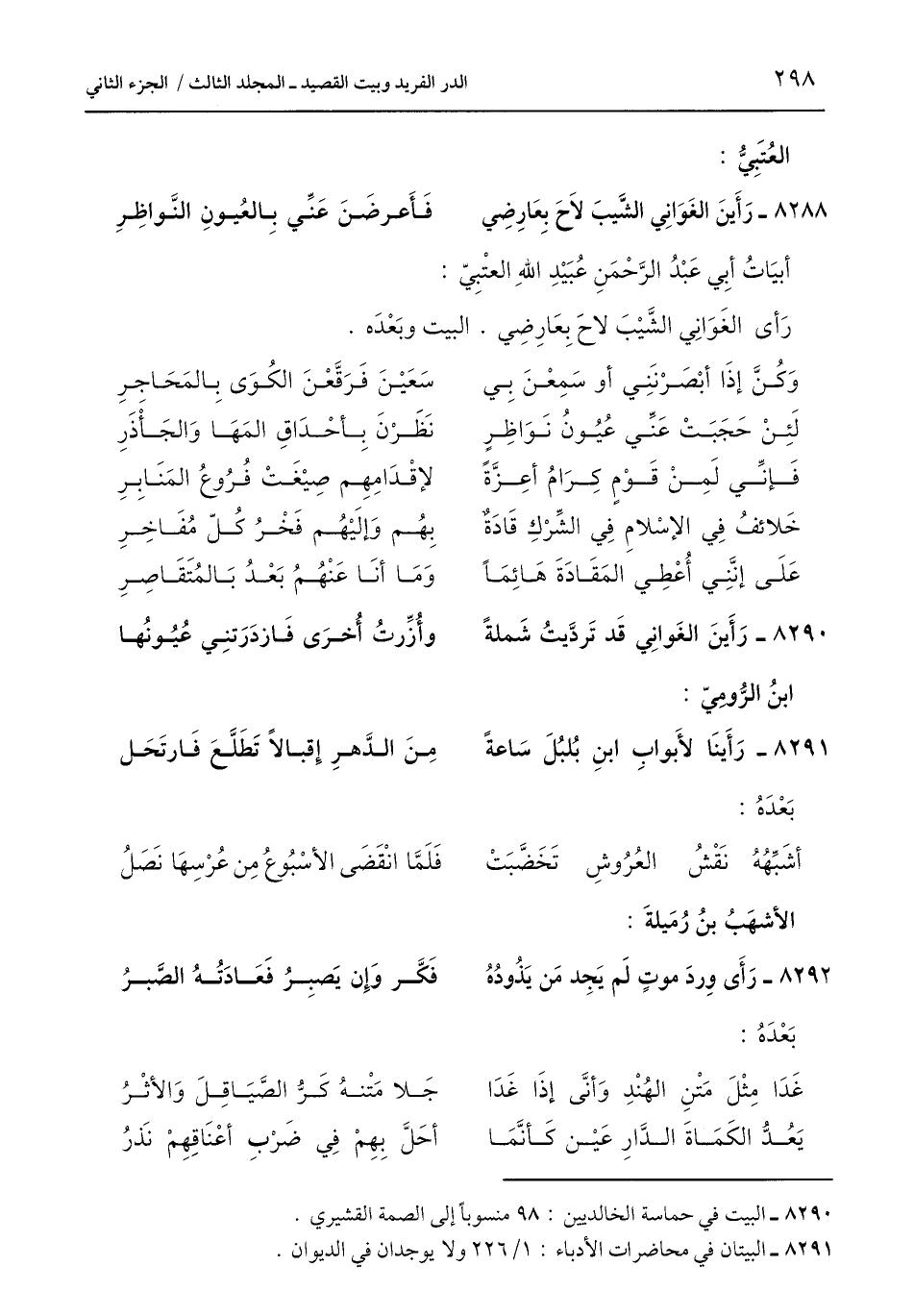 8290 - البيت في حماسة الخالديين: 98 منسوبًا إلى الصمة القشيري.