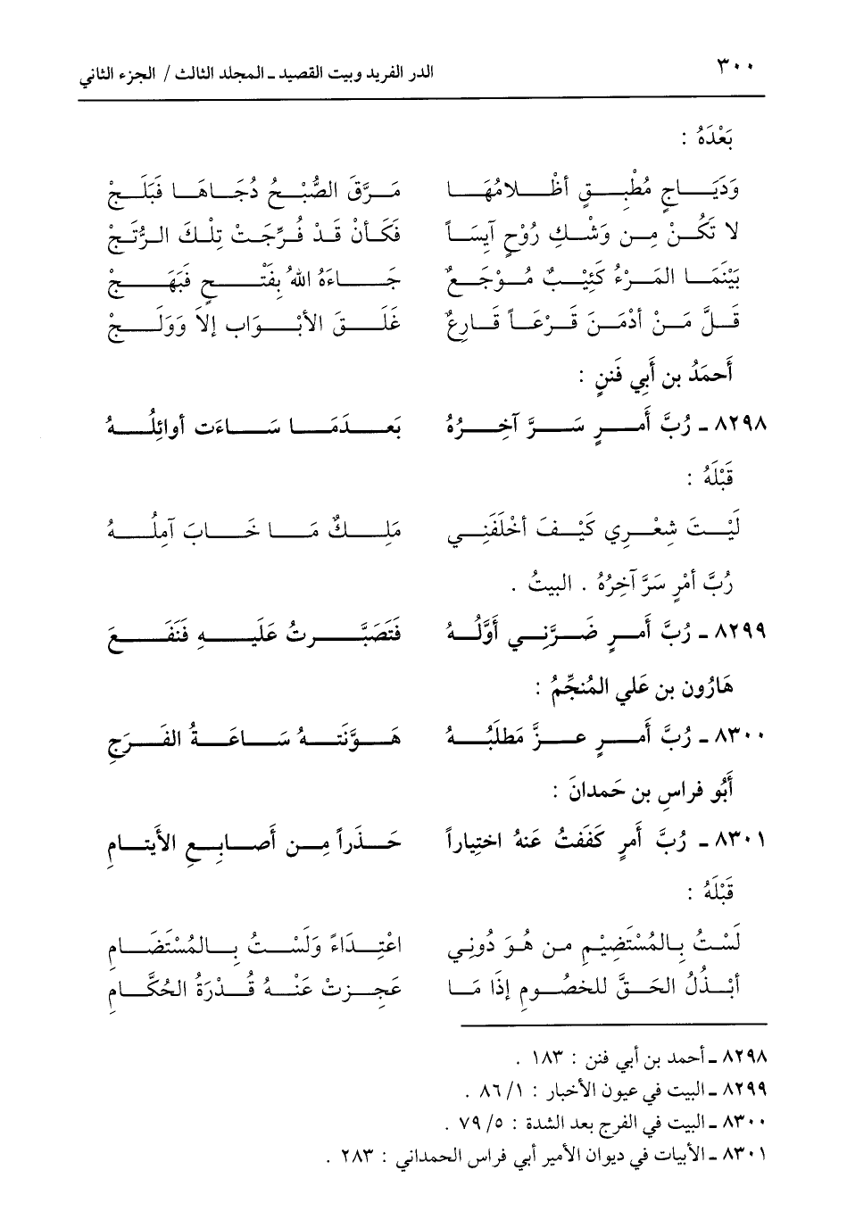 8301 - الأبيات في ديوان الأمير أبي فراس الحمداني: 283.