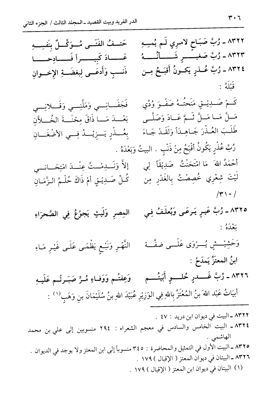 8326 - البيتان في ديوان المعتز (الإقبال) 179.
