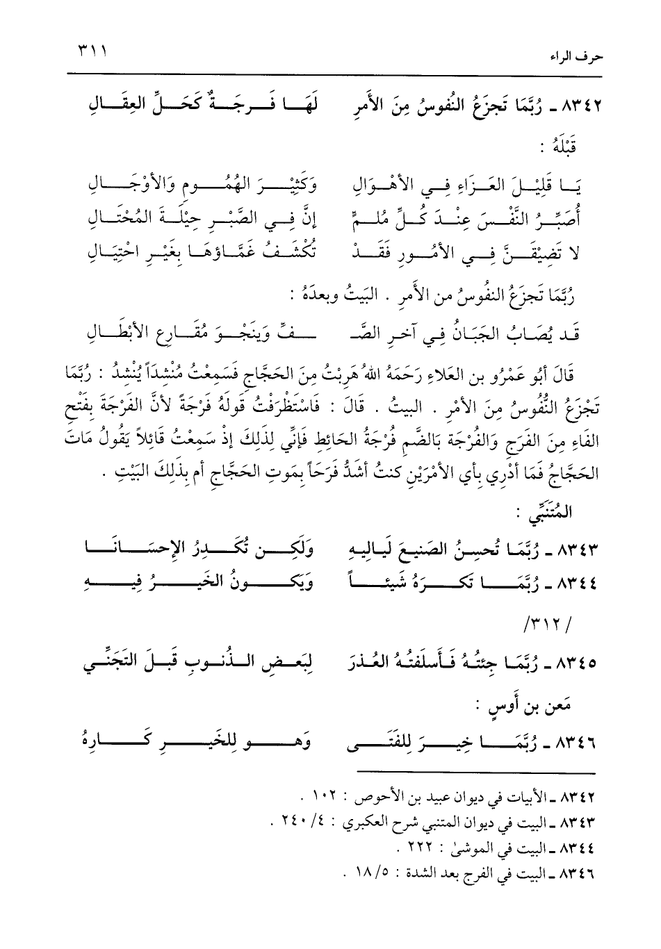 8342 - الأبيات في ديوان عبيد بن الأحوص: 102.