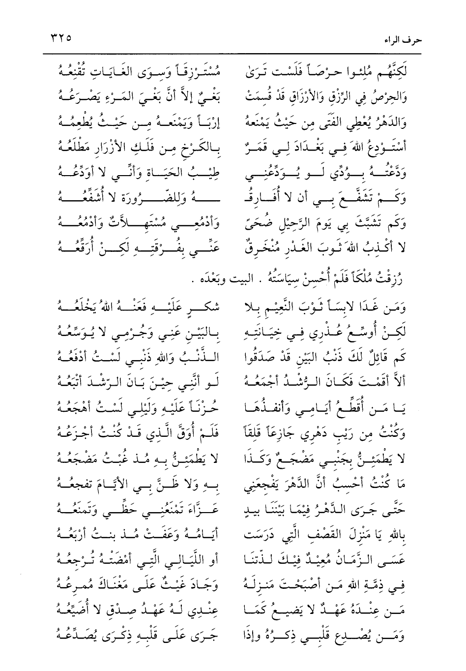 وَالحِرص فِي الرِّزْق وَالأرْزَاقِ قَدْ قُسِمَتْ ... بَغْي إِلَّا أَنَّ بَغْيَ المَرْءِ يَصرَعُهُ