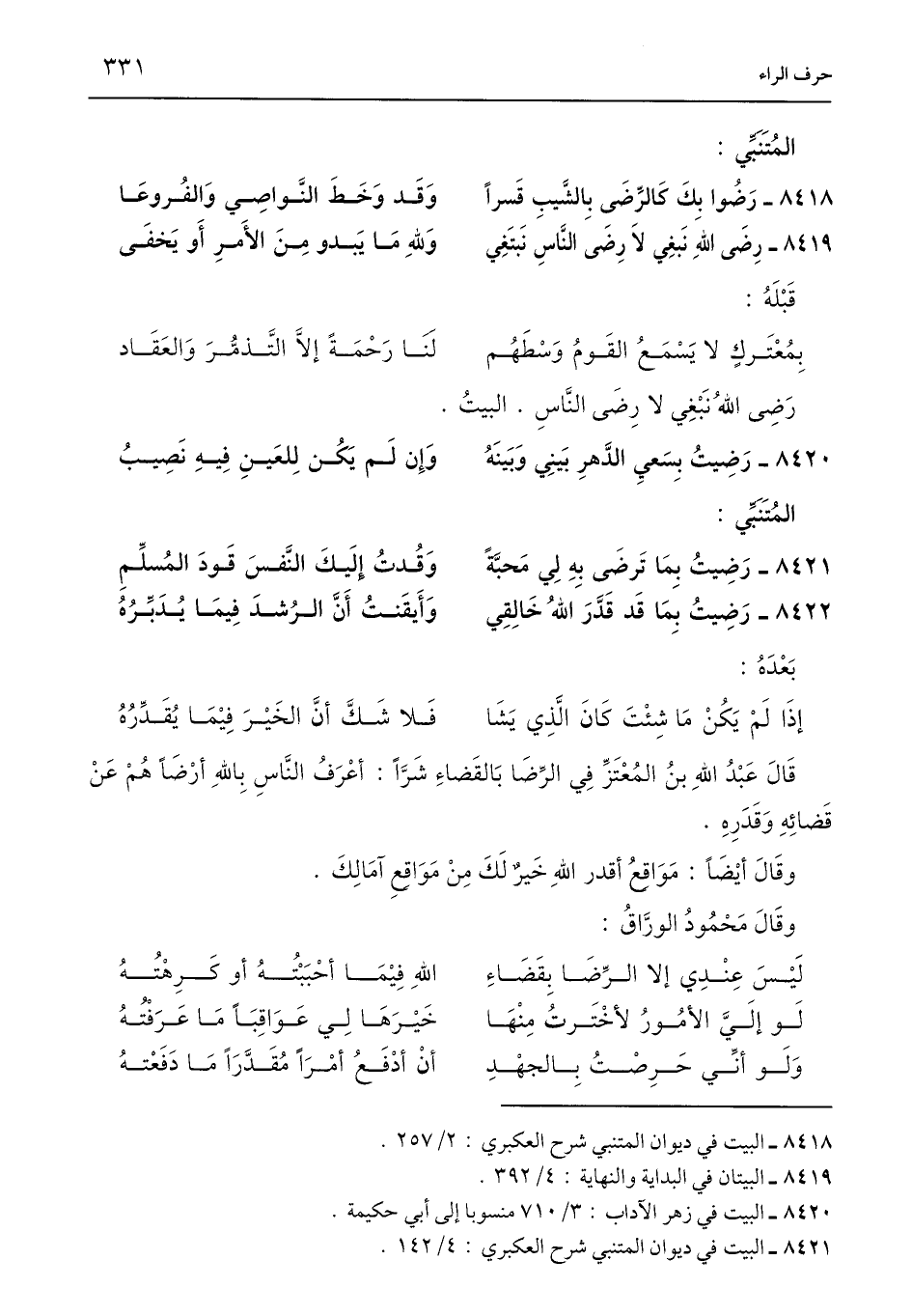 8421 - البيت في ديوان المتنبي شرح العكبري: 4/ 142.
