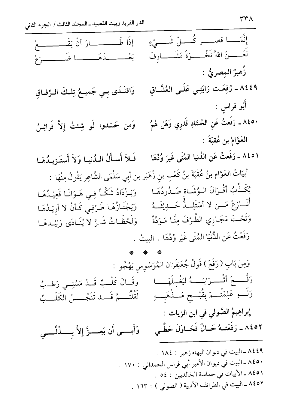 8451 - رَفَعتُ عَن الدُّنيا المُنَى غَيرَ وُدِّهَا ... فَلَا أَسأَلُ الدُّنيا وَلَا أَستَزيدُها