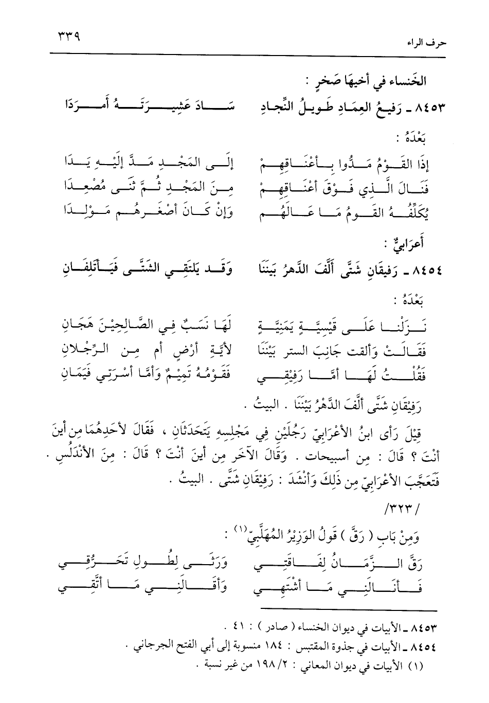 8454 - رَفيقَانِ شَتَّى أَلَّفَ الدَّهرُ بَينَنَا ... وَقَد يَلتَقِي الشَتَّى فَيَأتلِفَانِ