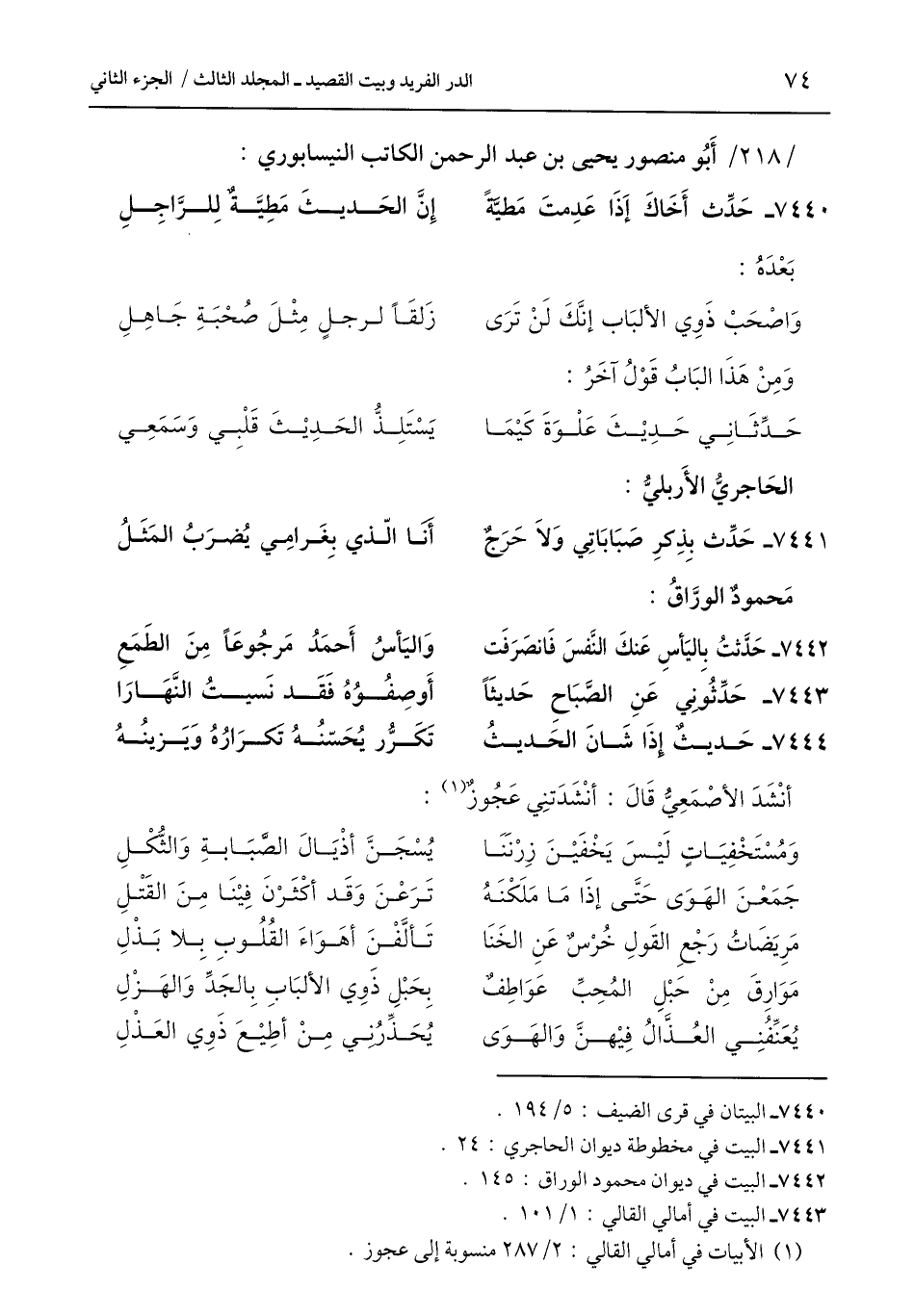 7442 - البيت في ديوان محمود الوراق: 145.