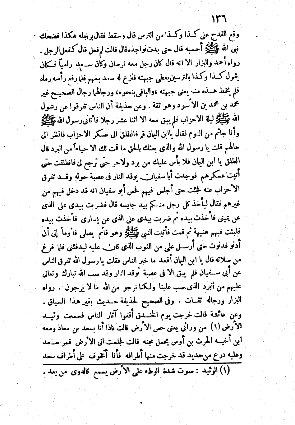 10155 - «وَعَنْ عَائِشَةَ قَالَتْ: خَرَجْتُ يَوْمَ الْخَنْدَقِ أَقْفُو آثَارَ النَّاسِ، فَسَمِعْتُ وَئِيدَ الْأَرْضِ مِنْ وَرَائِي - يَعْنِي: حِسَّ الْأَرْضِ - قَالَتْ: فَإِذَا أَنَا بِسَعْدِ بْنِ مُعَاذٍ وَمَعَهُ ابْنُ أَخِيهِ الْحَارِثُ بْنُ أَوْسٍ يَحْمِلُ مِجَنَّهُ.