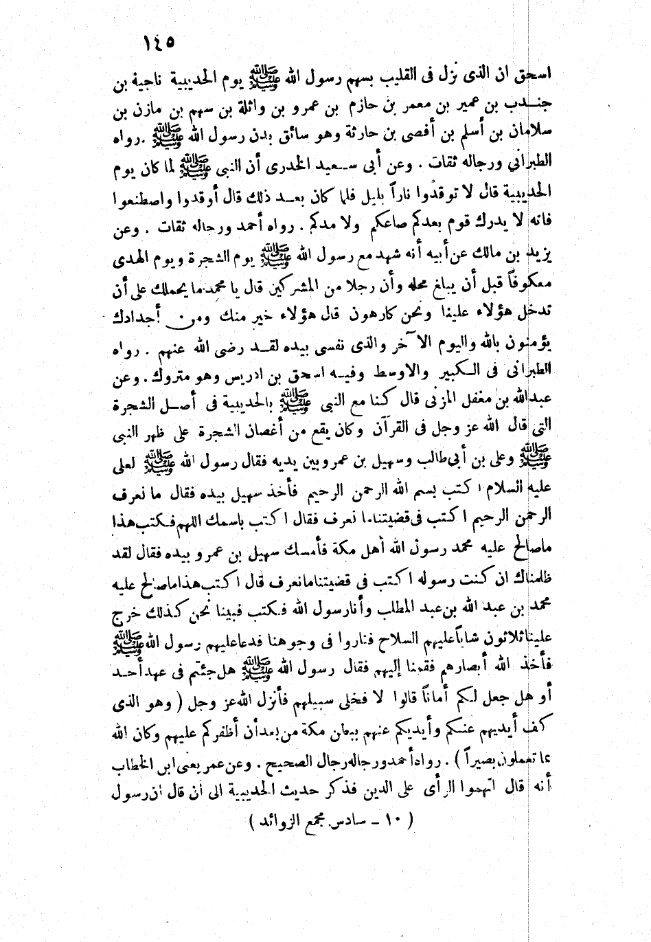 10182 - وَعَنْ عَبْدِ اللَّهِ بْنِ مُغَفَّلٍ الْمُزَنِيِّ قَالَ: «كُنَّا مَعَ النَّبِيِّ - صَلَّى اللَّهُ عَلَيْهِ وَسَلَّمَ - بِالْحُدَيْبِيَةِ فِي أَصْلِ الشَّجَرَةِ الَّتِي قَالَ اللَّهُ عَزَّ وَجَلَّ فِي الْقُرْآنِ وَكَانَ يَقَعُ مِنْ أَغْصَانِ الشَّجَرَةِ عَلَى ظَهْرِ النَّبِيِّ - صَلَّى اللَّهُ عَلَيْهِ وَسَلَّمَ - وَعَلِيُّ بْنُ أَبِي طَالِبٍ، وَسُهَيْلُ بْنُ عَمْرٍو بَيْنَ يَدَيْهِ، فَقَالَ رَسُولُ اللَّهِ - صَلَّى اللَّهُ عَلَيْهِ وَسَلَّمَ - لِعَلِيٍّ - عَلَيْهِ السَّلَامُ -: " اكْتُبْ بِسْمِ اللَّهِ الرَّحْمَنِ الرَّحِيمِ ". فَأَخَذَ سُهَيْلٌ بِيَدِهِ، فَقَالَ: مَا نَعْرِفُ الرَّحْمَنَ الرَّحِيمَ، اكْتُبْ فِي قَضِيَّتِنَا مَا نَعْرِفُ، فَقَالَ: " اكْتُبْ بِاسْمِكَ اللَّهُمَّ " فَكَتَبَ ".