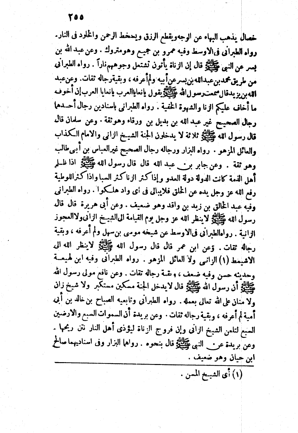 10539 - وَعَنِ ابْنِ عُمَرَ قَالَ: قَالَ رَسُولُ اللَّهِ - صَلَّى اللَّهُ عَلَيْهِ وَسَلَّمَ -: " «لَا يَنْظُرُ اللَّهُ إِلَى الْأُشَيْمِطِ الزَّانِي، وَلَا الْعَائِلِ الْمَزْهُوِّ» ".