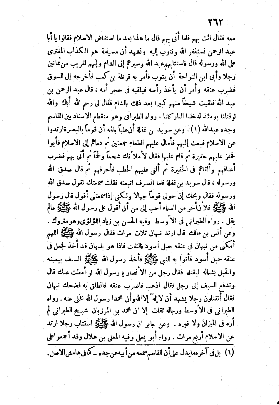 10580 - وَعَنْ أَنَسِ بْنِ مَالِكٍ قَالَ: «ارْتَدَّ نَبْهَانُ ثَلَاثَ مَرَّاتٍ، فَقَالَ رَسُولُ اللَّهِ - صَلَّى اللَّهُ عَلَيْهِ وَسَلَّمَ -: " اللَّهُمَّ أَمْكِنِّي مِنْ نَبْهَانَ فِي عُنُقِهِ حَبْلٌ أَسْوَدُ ".