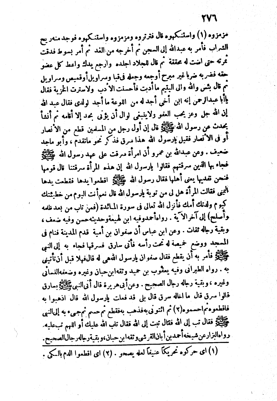 فَقَالُوا: نَحْنُ نَفْدِيهَا بِخَمْسِمِائَةِ دِينَارٍ، قَالَ " اقْطَعُوا يَدَهَا " فَقُطِعَتْ يَدُهَا الْيُمْنَى، فَقَالَتِ الْمَرْأَةُ: هَلْ لِي مِنْ تَوْبَةٍ يَا رَسُولَ اللَّهِ؟ قَالَ: " نَعَمْ، أَنْتِ الْيَوْمَ مِنْ خَطِيئَتِكَ كَيَوْمِ وَلَدَتْكِ أُمُّكِ " فَأَنْزَلَ اللَّهُ تَعَالَى فِي سُورَةِ الْمَائِدَةِ: {فَمَنْ تَابَ مِنْ بَعْدِ ظُلْمِهِ وَأَصْلَحَ فَإِنَّ اللَّهَ يَتُوبُ عَلَيْهِ} [المائدة: 39]»، إِلَى آخَرِ الْآيَةِ.