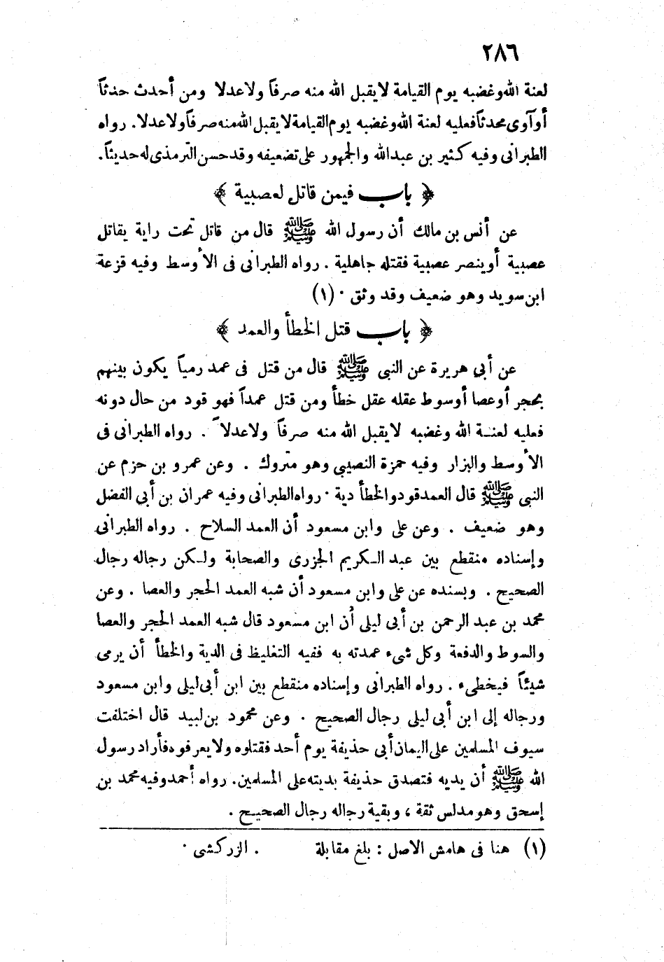 10718 - عَنْ أَبِي هُرَيْرَةَ عَنِ النَّبِيِّ - صَلَّى اللَّهُ عَلَيْهِ وَسَلَّمَ - قَالَ: " «مَنْ قُتِلَ فِي عِمِّيَّةٍ رَمْيًا يَكُونُ بَيْنَهُمْ بِحَجَرٍ أَوْ عَصًا أَوْ سَوْطٍ، عَقْلُهُ عَقْلُ خَطَأٍ، وَمَنْ قُتِلَ عَمْدًا فَهُوَ قَوَدٌ، مَنْ حَالَ دُونَهُ فَعَلَيْهِ لَعْنَةُ اللَّهِ وَغَضَبُهُ، لَا يَقْبَلُ اللَّهُ مِنْهُ صَرْفًا وَلَا عَدْلًا» ".