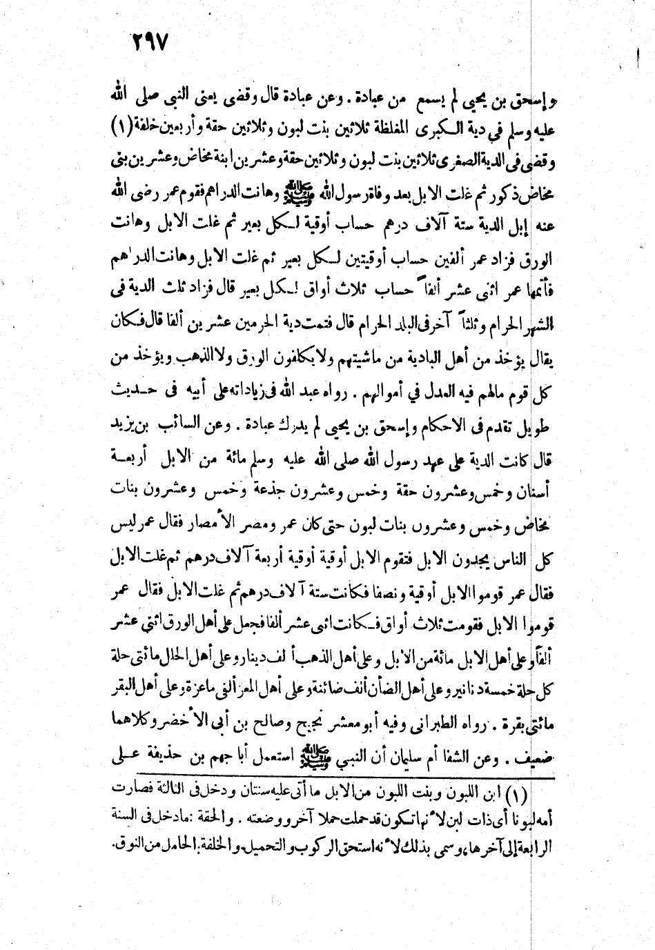 قَالَ: فَزَادَ ثُلُثُ الدِّيَةِ فِي الشَّهْرِ الْحَرَامِ، وَثُلُثًا آخَرَ فِي الْبَلَدِ الْحَرَامِ. قَالَ: فَتَمَّتِ دِيَةُ الْحَرَمَيْنِ عِشْرِينَ أَلْفًا. قَالَ: فَكَانَ يُقَالُ: يُؤْخَذُ مِنْ أَهْلِ الْبَادِيَةِ مِنْ مَاشِيَتِهِمْ وَلَا يُكَلَّفُونَ الْوَرِقَ، وَلَا الذَّهَبَ، وَيُؤْخَذُ مِنْ كُلِّ قَوْمٍ مَا لَهُمْ فِي الْعَدْلُ فِي أَمْوَالِهِمْ.