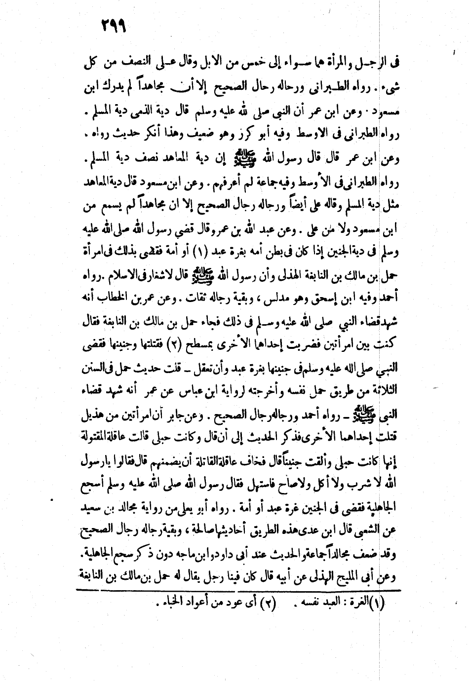 قَالَ: فَخَافَ عَاقِلَةُ الْمَقْتُولَةِ أَنْ يُضَمِّنَهُمْ، قَالَ: فَقَالُوا: يَا رَسُولَ اللَّهِ، لَا شَرِبَ، وَلَا أَكَلَ وَلَا صَاحَ فَاسْتَهَلَّ فَقَالَ رَسُولُ اللَّهِ - صَلَّى اللَّهُ عَلَيْهِ وَسَلَّمَ -: " أَسَجْعُ الْجَاهِلِيَّةِ؟! ". فَقَضَى فِي الْجَنِينِ غُرَّةَ عَبْدٍ أَوْ أَمَةٍ».
