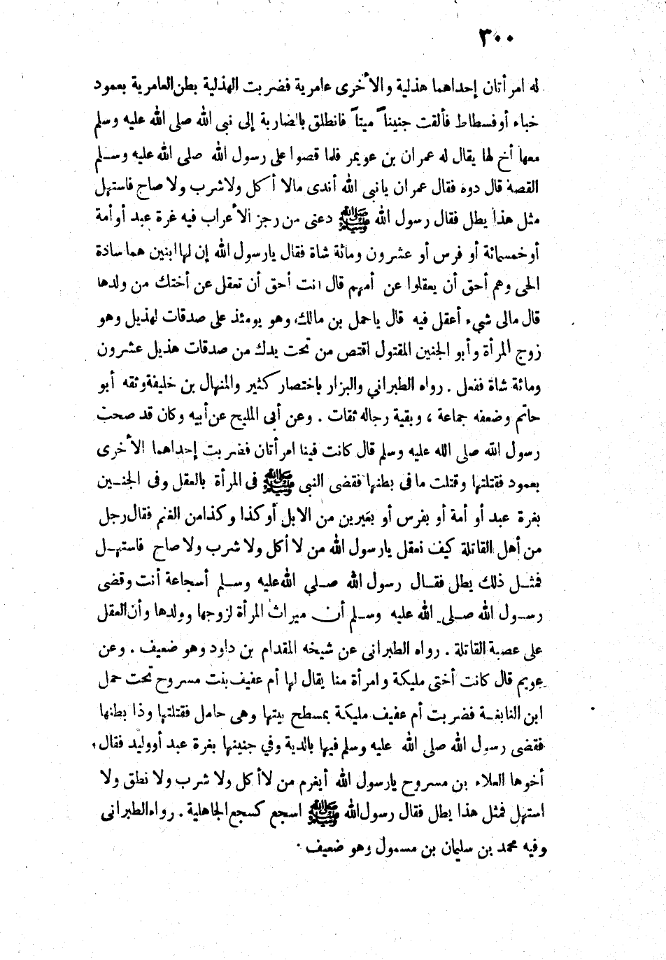 10789 - وَعَنْ أَبِي الْمَلِيحِ عَنْ أَبِيهِ، وَكَانَ قَدْ صَحِبَ رَسُولَ اللَّهِ - صَلَّى اللَّهُ عَلَيْهِ وَسَلَّمَ - قَالَ: «كَانَتْ فِينَا امْرَأَتَانِ فَضَرَبَتْ إِحْدَاهُمَا الْأُخْرَى بِعَمُودٍ فَقَتَلَتْهَا، وَقَتَلَتْ مَا فِي بَطْنِهَا، فَقَضَى النَّبِيُّ - صَلَّى اللَّهُ عَلَيْهِ وَسَلَّمَ - فِي الْمَرْأَةِ بِالْعَقْلِ، وَفِي الْجَنِينِ بِغُرَّةِ عَبْدٍ أَوْ أَمَةٍ أَوْ بِفَرَسٍ، أَوْ بَعِيرَيْنِ مِنَ الْإِبِلِ، أَوْ كَذَا وَكَذَا مِنَ الْغَنَمِ، فَقَالَ رَجُلٌ مِنْ أَهْلِ الْقَاتِلَةِ: كَيْفَ نَعْقِلُ يَا رَسُولَ اللَّهِ مَنْ لَا أَكَلَ وَلَا شَرِبَ، وَلَا صَاحَ فَاسْتَهَلَّ، فَمِثْلُ ذَلِكَ يُطَلُّ؟ فَقَالَ رَسُولُ اللَّهِ - صَلَّى اللَّهُ عَلَيْهِ وَسَلَّمَ -: " أَسَجَّاعَةٌ أَنْتَ؟ ".