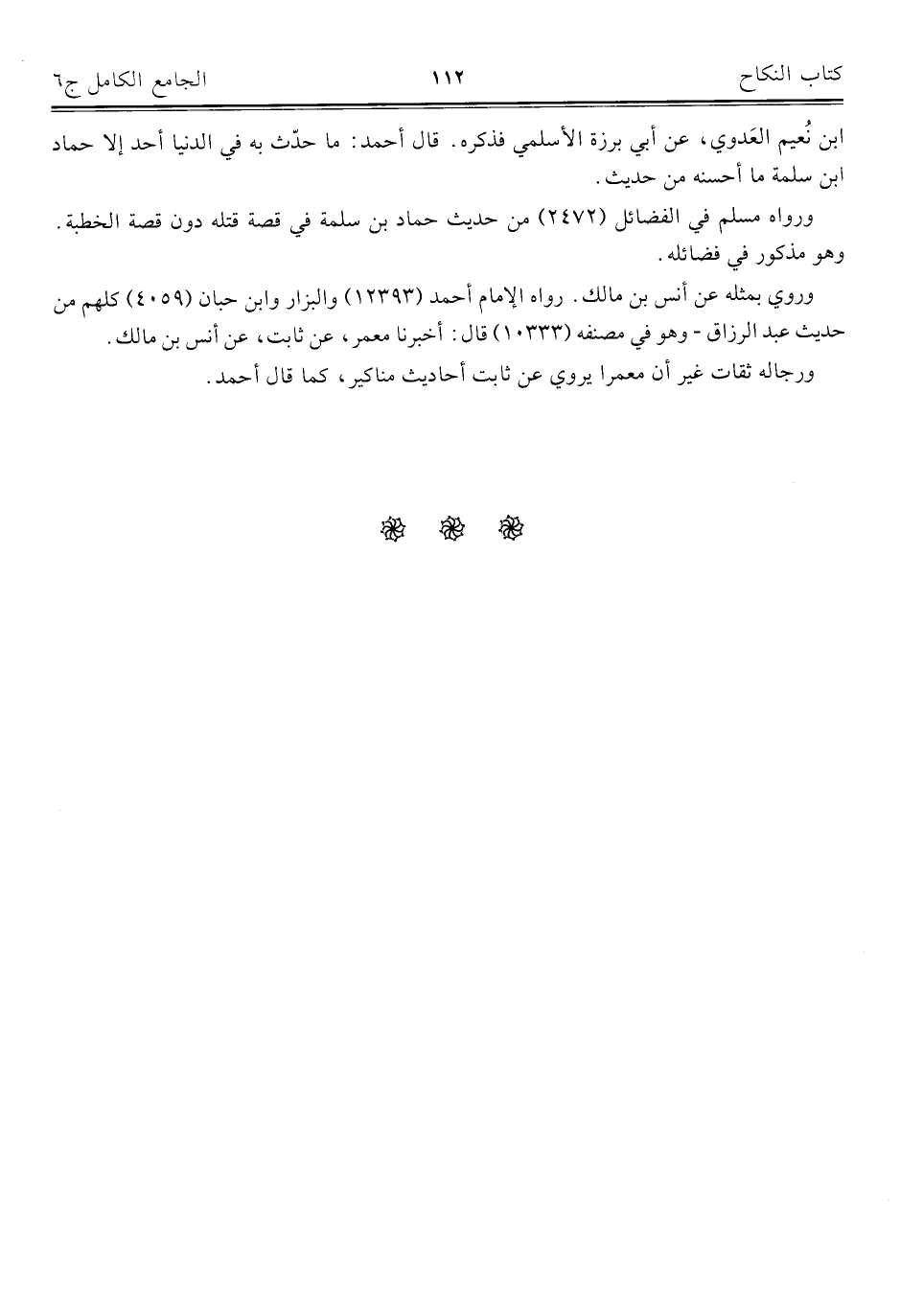 كتاب الجامع الكامل في الحديث الصحيح الشامل المرتب على أبواب الفقه (اسم الجزء: 6)