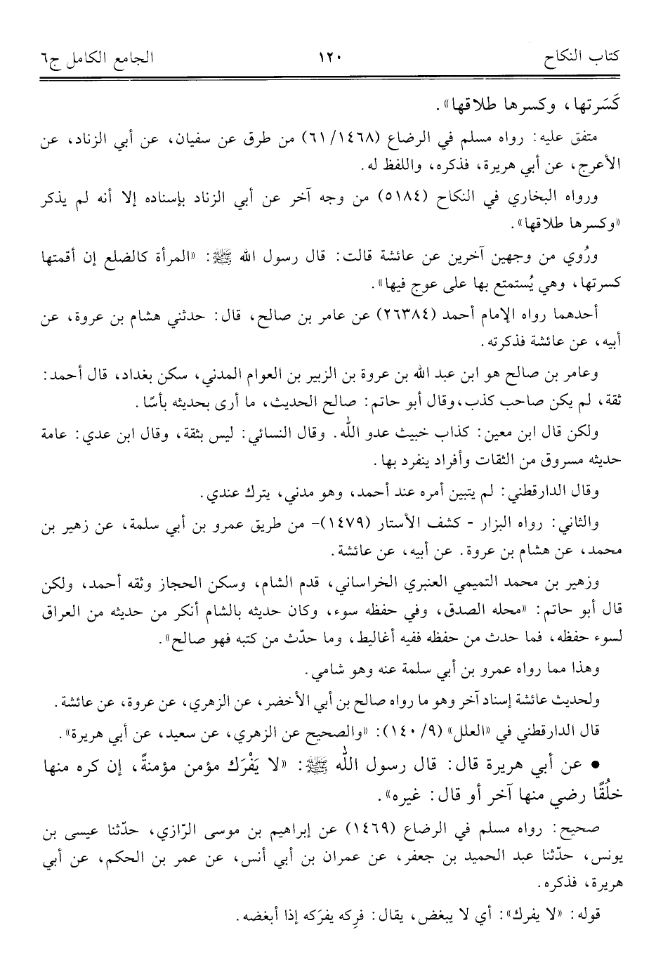كتاب الجامع الكامل في الحديث الصحيح الشامل المرتب على أبواب الفقه (اسم الجزء: 6)