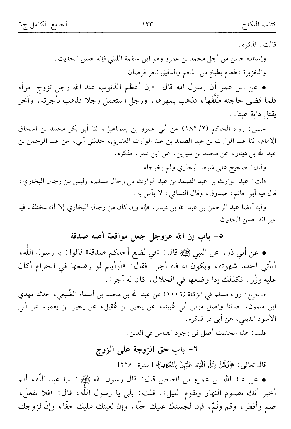 كتاب الجامع الكامل في الحديث الصحيح الشامل المرتب على أبواب الفقه (اسم الجزء: 6)