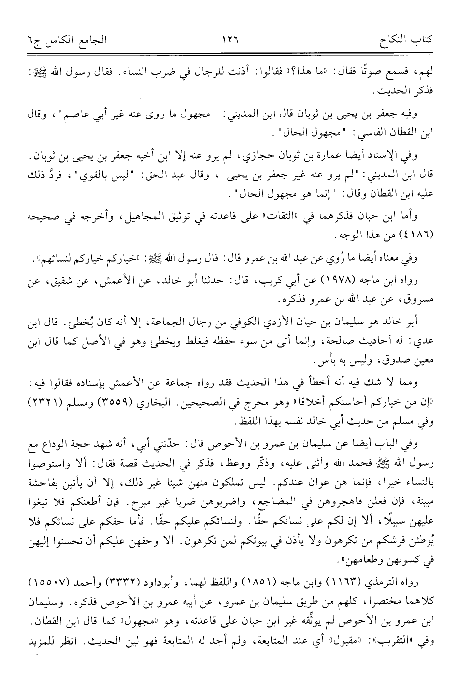 كتاب الجامع الكامل في الحديث الصحيح الشامل المرتب على أبواب الفقه (اسم الجزء: 6)