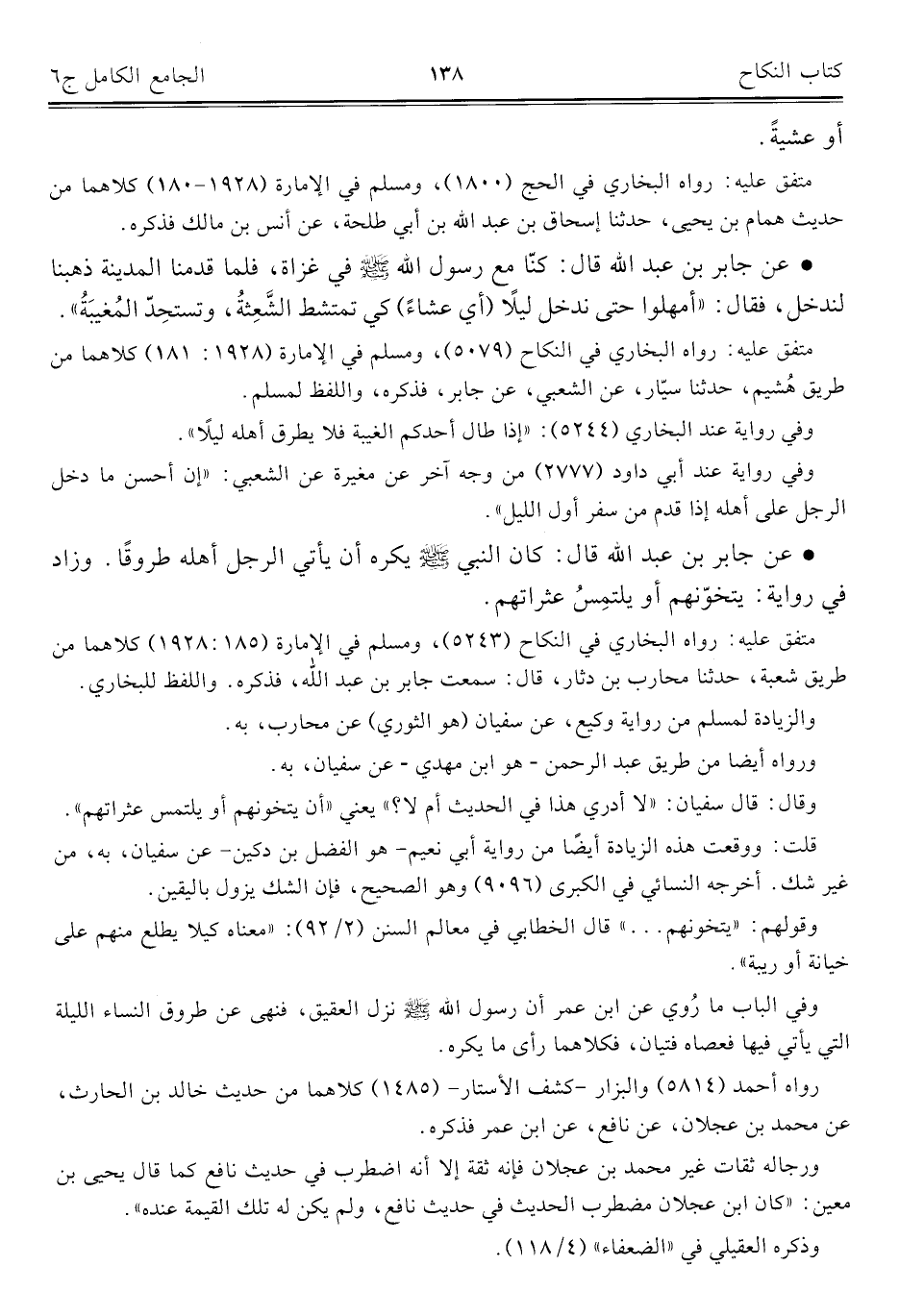 كتاب الجامع الكامل في الحديث الصحيح الشامل المرتب على أبواب الفقه (اسم الجزء: 6)