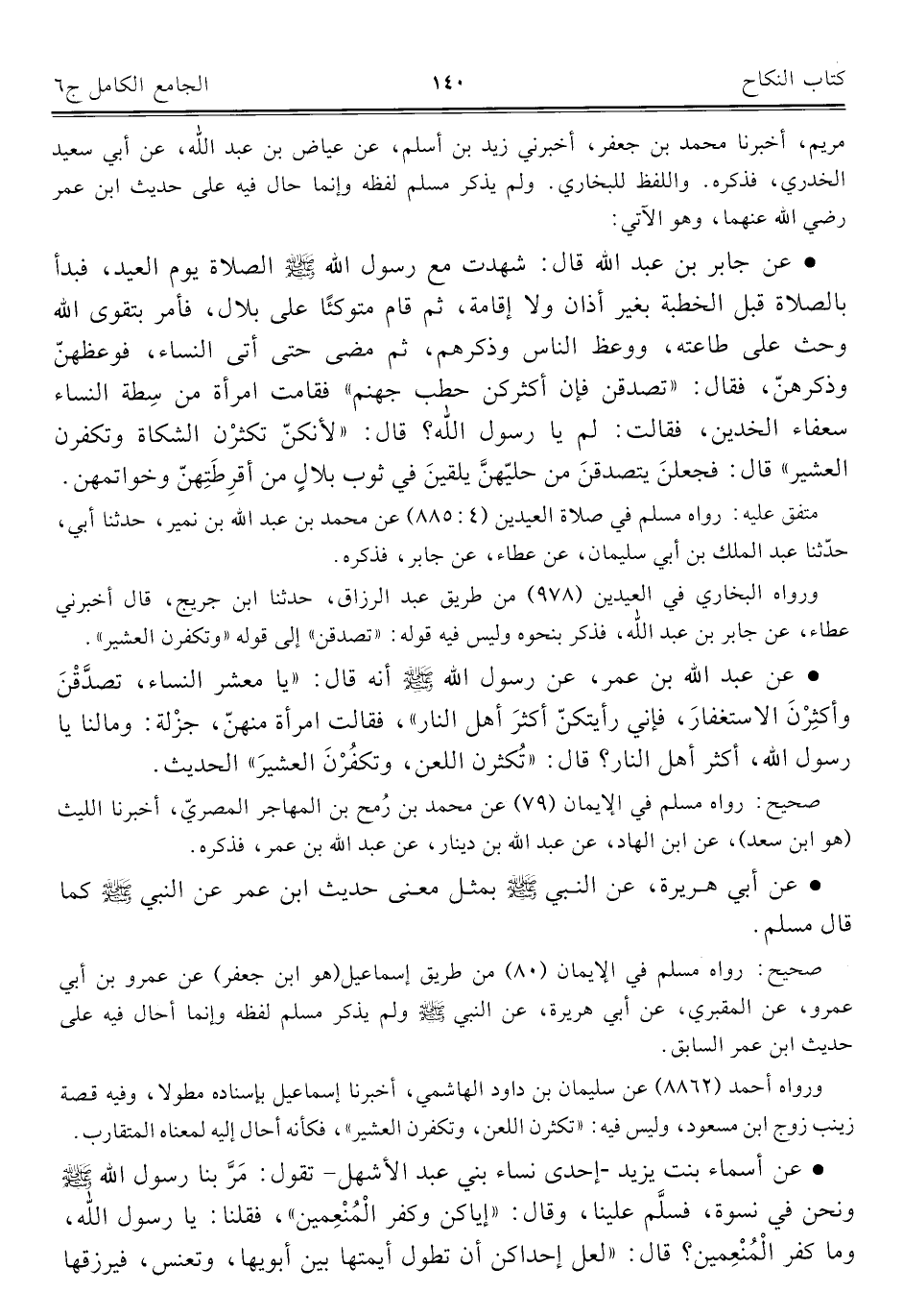 ورواه البخاري في العيدين (٩٧٨) من طريق عبد الرزاق، حدثنا ابن جريج، قال أخبرني عطاء، عن جابر بن عبد اللَّه، فذكر بنحوه وليس فيه قوله: "تصدقن" إلى قوله "وتكفرن العشير".