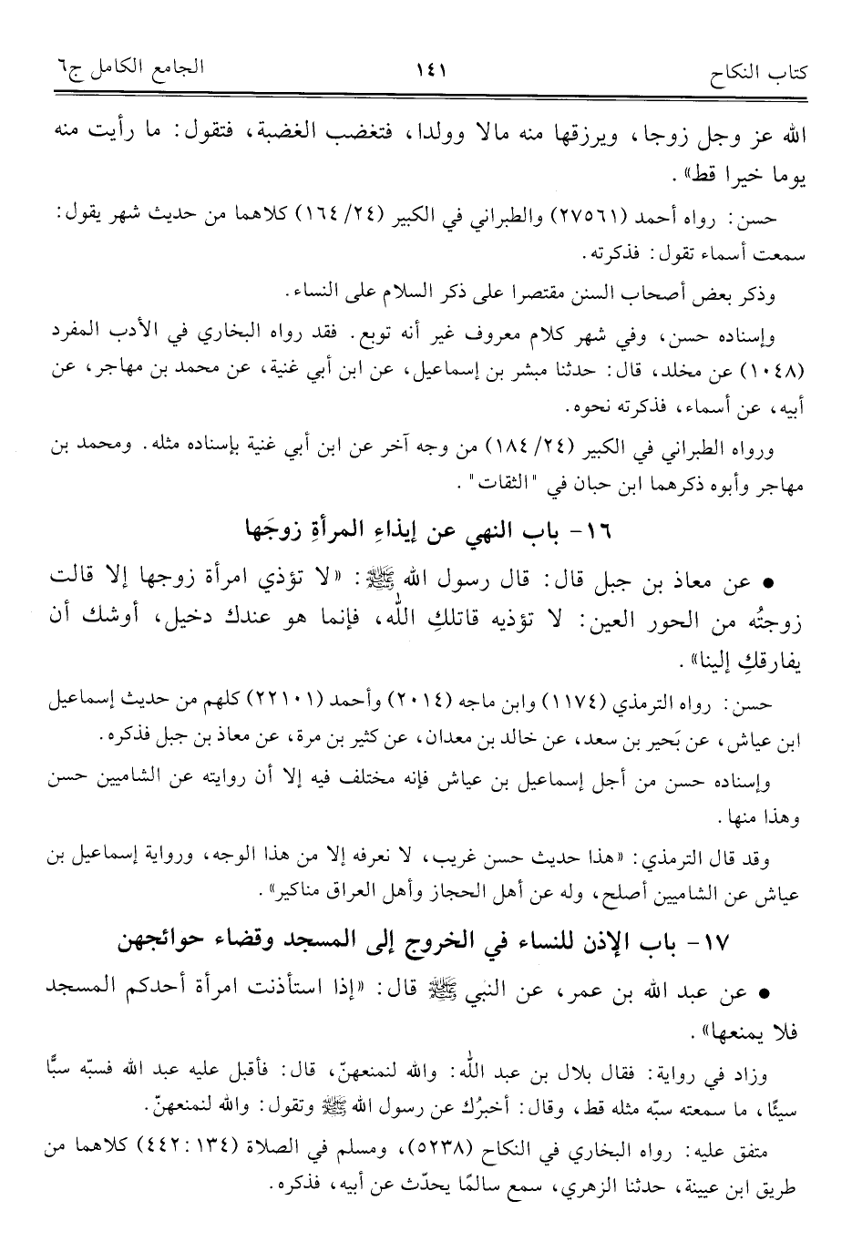 كتاب الجامع الكامل في الحديث الصحيح الشامل المرتب على أبواب الفقه (اسم الجزء: 6)