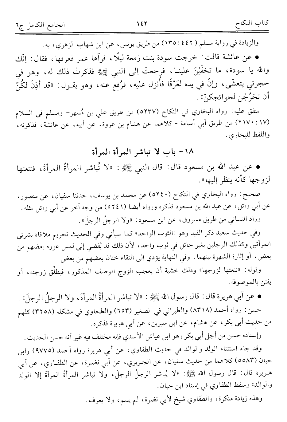 كتاب الجامع الكامل في الحديث الصحيح الشامل المرتب على أبواب الفقه (اسم الجزء: 6)