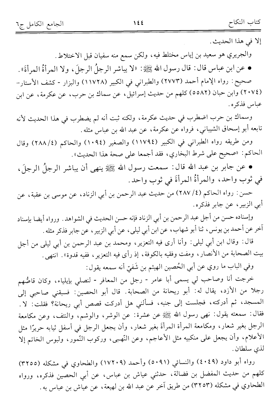 كتاب الجامع الكامل في الحديث الصحيح الشامل المرتب على أبواب الفقه (اسم الجزء: 6)