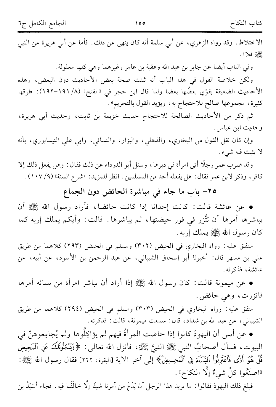 كتاب الجامع الكامل في الحديث الصحيح الشامل المرتب على أبواب الفقه (اسم الجزء: 6)