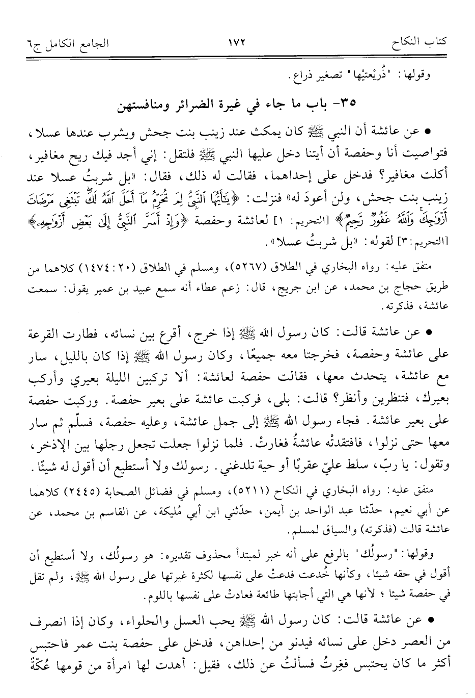 ٣٥ - باب ما جاء في غيرة الضرائر ومنافستهن