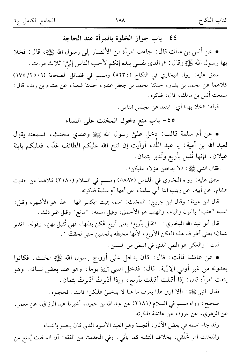 كتاب الجامع الكامل في الحديث الصحيح الشامل المرتب على أبواب الفقه (اسم الجزء: 6)