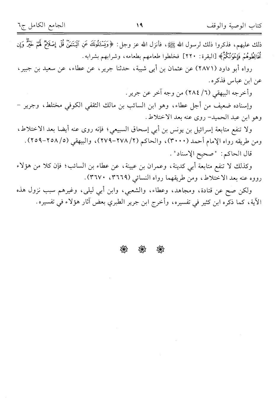 كتاب الجامع الكامل في الحديث الصحيح الشامل المرتب على أبواب الفقه (اسم الجزء: 6)