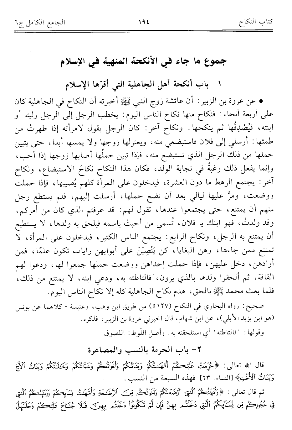 ٢ - باب الحرمة بالنسب والمصاهرة