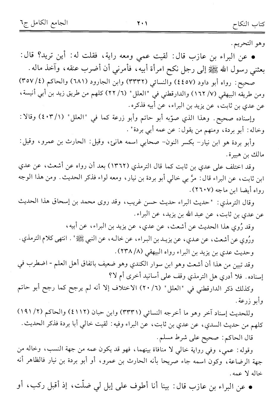 كتاب الجامع الكامل في الحديث الصحيح الشامل المرتب على أبواب الفقه (اسم الجزء: 6)