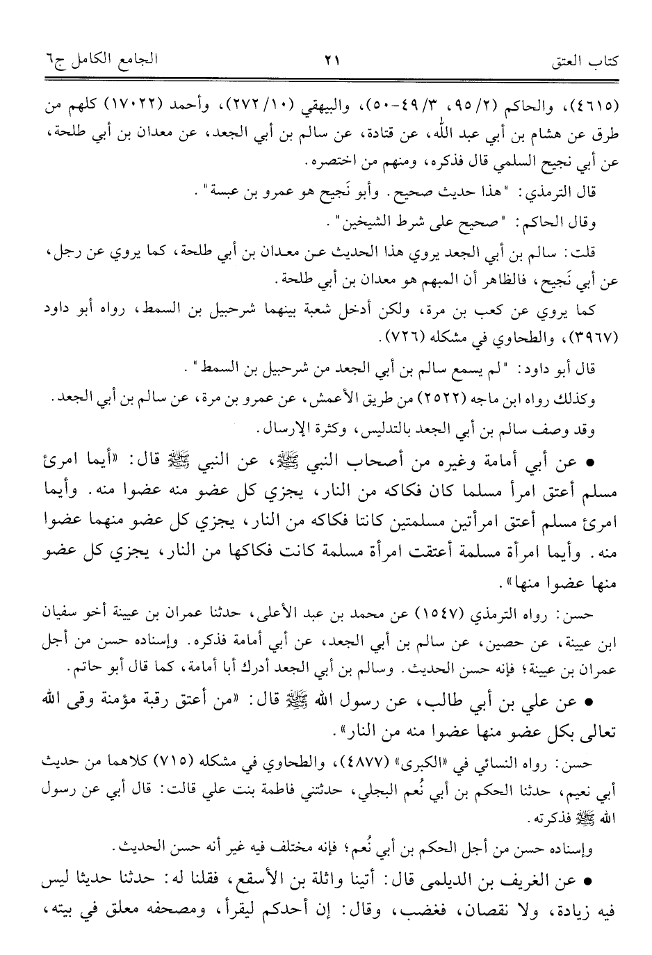 كتاب الجامع الكامل في الحديث الصحيح الشامل المرتب على أبواب الفقه (اسم الجزء: 6)
