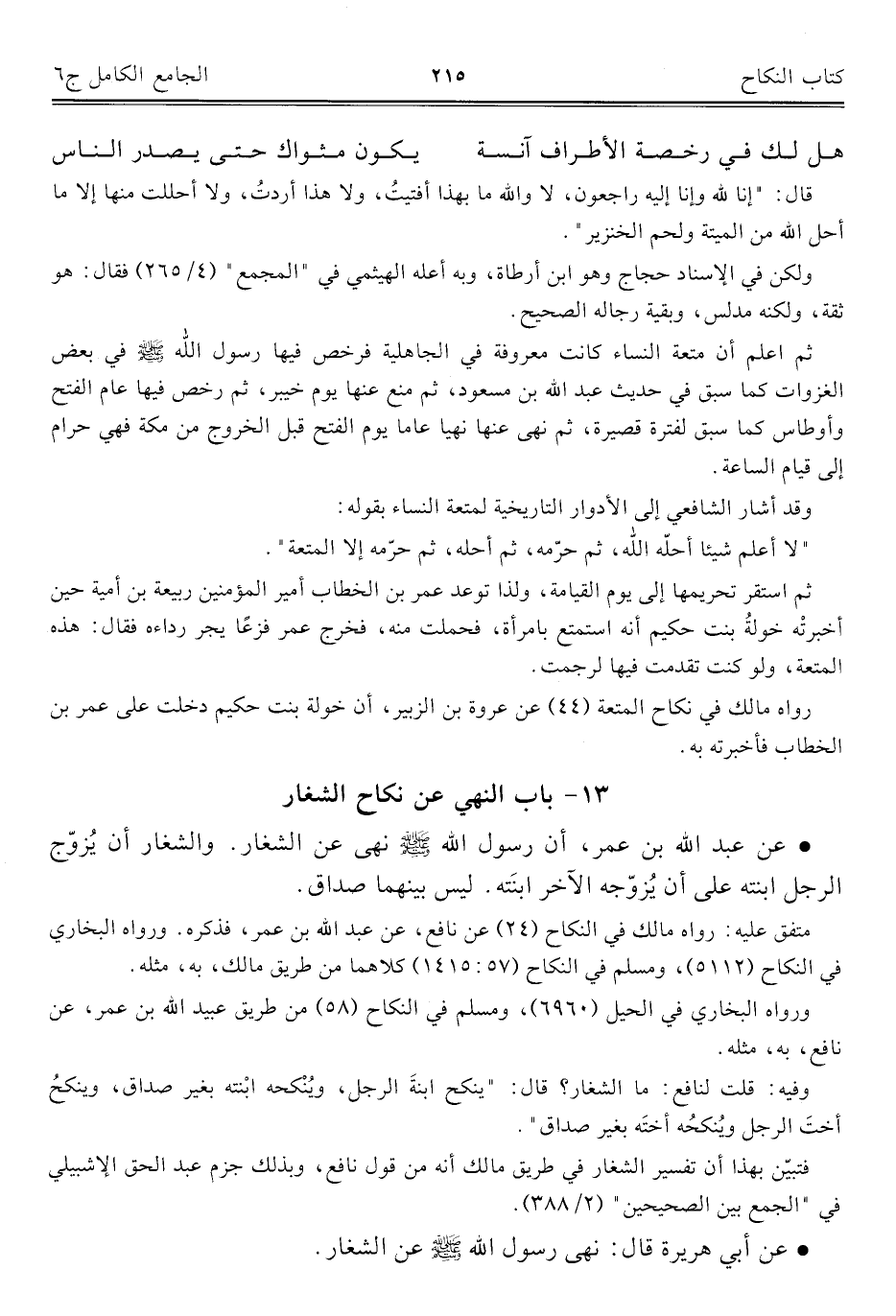كتاب الجامع الكامل في الحديث الصحيح الشامل المرتب على أبواب الفقه (اسم الجزء: 6)