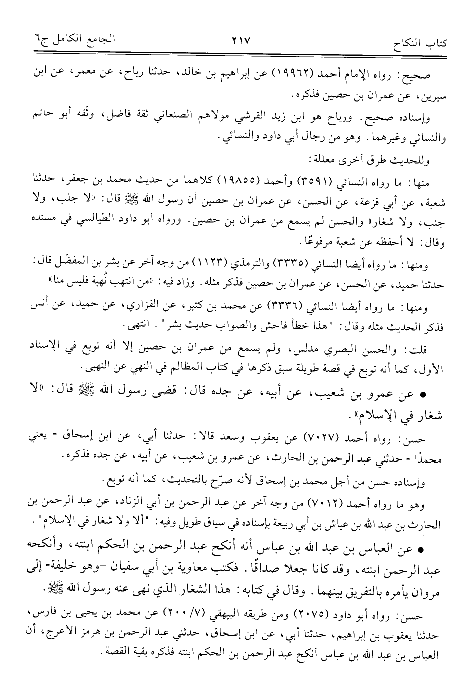 كتاب الجامع الكامل في الحديث الصحيح الشامل المرتب على أبواب الفقه (اسم الجزء: 6)