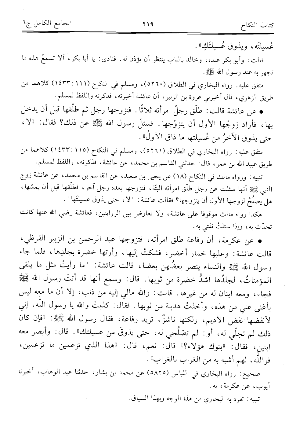 كتاب الجامع الكامل في الحديث الصحيح الشامل المرتب على أبواب الفقه (اسم الجزء: 6)